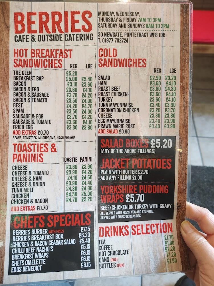 Located at 30 Newgate, Pontefract WF8 1DB, Berries Pontefract stands out in the local dining scene. This café not only emphasizes quality food but also exudes a welcoming atmosphere. As a women-owned establishment, it reflects passion and dedication, making each visit a unique experience. The café is accessible for everyone, featuring wheelchair-friendly entrances and facilities, ensuring all guests feel welcome. The extensive outdoor seating offers a great option for sunny days, while the indoor area provides a snug refuge during colder months. It’s situated close to local landmarks, making it an ideal stop for both locals and visitors exploring the town.